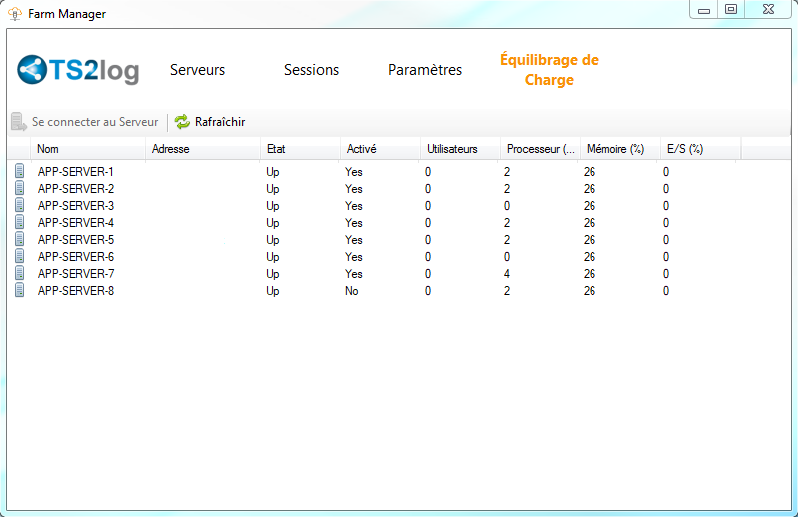 L’onglet « Serveurs » s’affiche par défaut au lancement du « Gestionnaire de Ferme » :